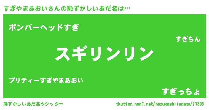 | ポケモン風あだ名 | 『スギキング』『ヒスギヤマアオイ』 |