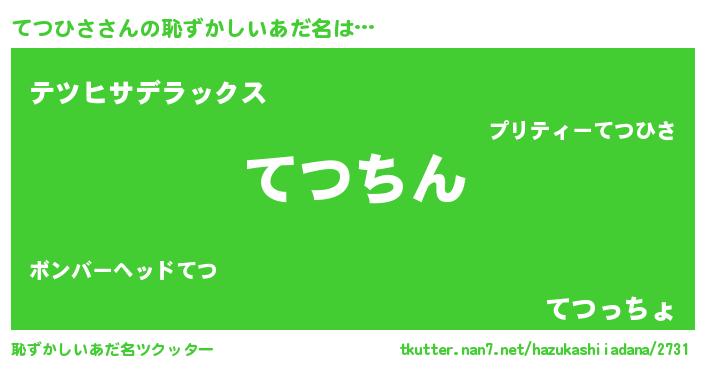 | ヒーロー風カッコイイあだ名 | 『ネオテツヒサ』『最強戦士テツヒサ』 |