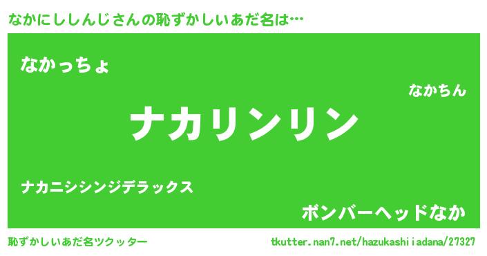 | 男性向けラノベタイトル風あだ名 | 『なかにししんじの嫁は女の子じゃないと思った?』 |