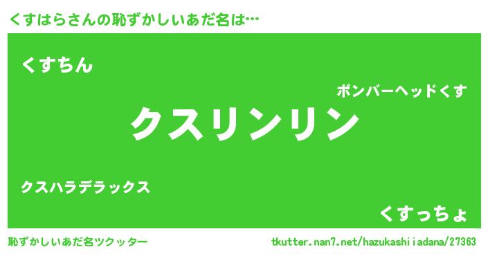 | 女子向けラノベタイトル風あだ名 | 『くすはらは平凡を望む』 |