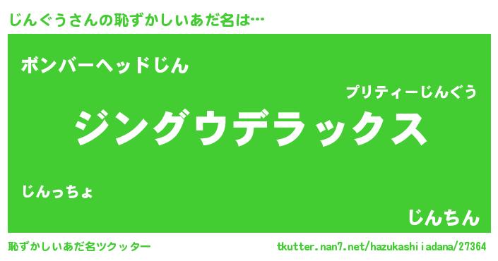 | 意味不明あだ名 | 『自称じんぐう』『永久保存じんぐう』 |