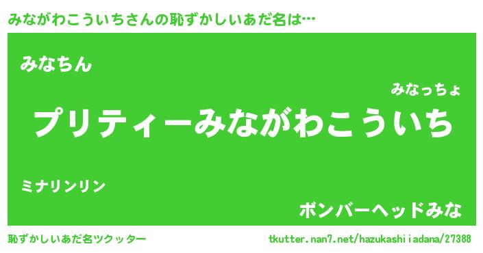 | ヘコむあだ名 | 『みなもー』『みながわこういち(爆)』 |
