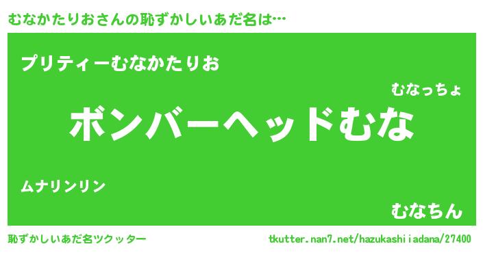 | 欧米人風あだ名 | 『むなかたりお・ステッグマイヤー』 |