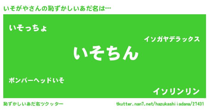 | 意味不明あだ名 | 『住所不定無職いそがや(3歳)』 |