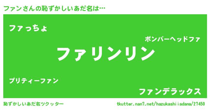 | ポケモン風あだ名 | 『ファキング』『ヒファン』 |