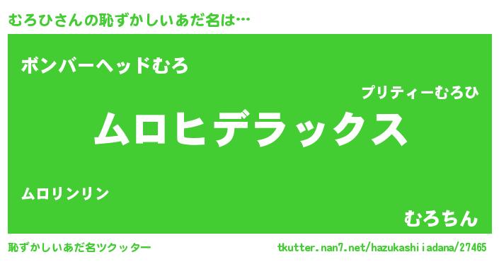 | ヒーロー風カッコイイあだ名 | 『ウルトラ戦士ムロヒ』『愛の使者むろひ』 |