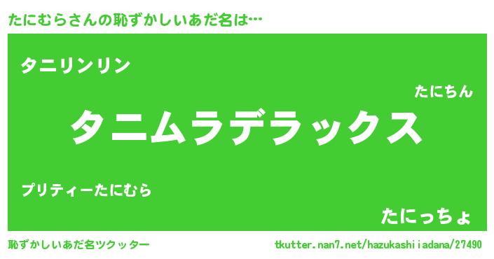 | 男性向けラノベタイトル風あだ名 | 『Re:たにむらから始める異世界生活』 |