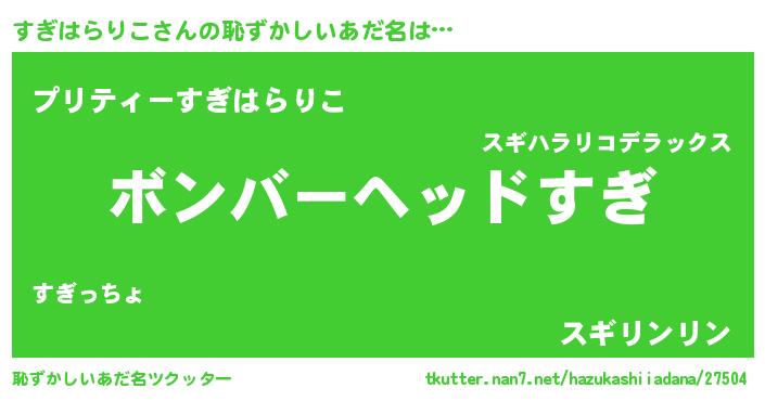 | ヘコむあだ名 | 『すぎもー』『すぎぷりん』『つくし』 |
