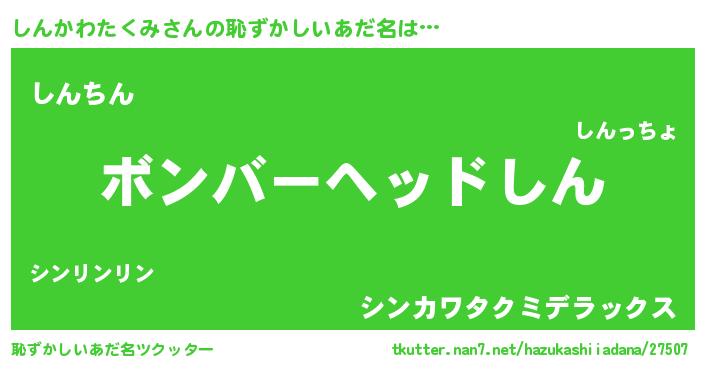 | ヘコむあだ名 | 『しんかわたくみ(笑)』『つくし』 |