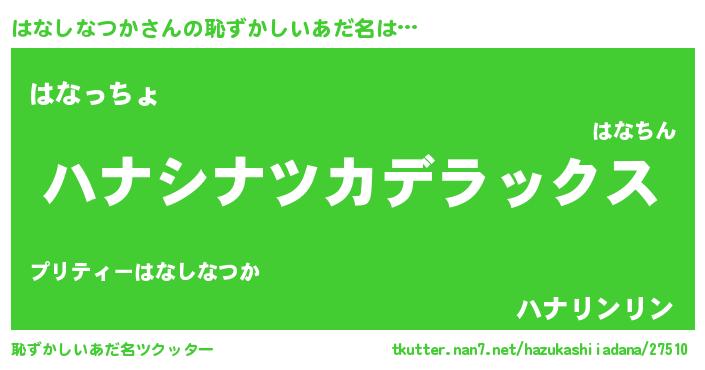 | 男性向けラノベタイトル風あだ名 | 『はなしなつかに滅ぼされるだけの簡単なお仕事です』 |