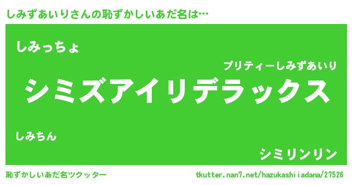 | 欧米人風あだ名 | 『しみずあいり・ステッグマイヤー』 |