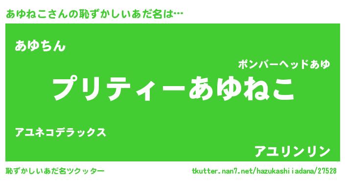 | ヘコむあだ名 | 『あゆにー』『あゆねこ(笑)』 |