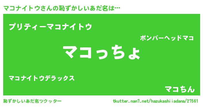 | 欧米人風あだ名 | 『マコナイトウクリステル』 |