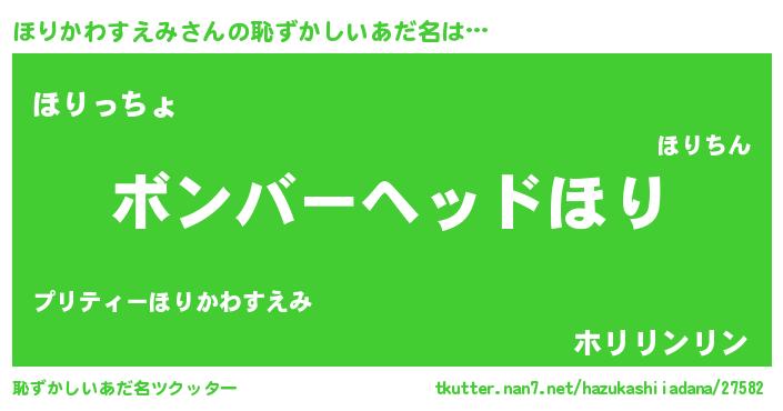 | 男性向けラノベタイトル風あだ名 | 『ほりかわすえみに滅ぼされるだけの簡単なお仕事です』 |