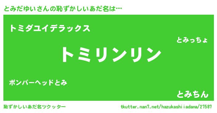 | 男性向けラノベタイトル風あだ名 | 『とみだゆいの嫁は女の子じゃないと思った?』 |