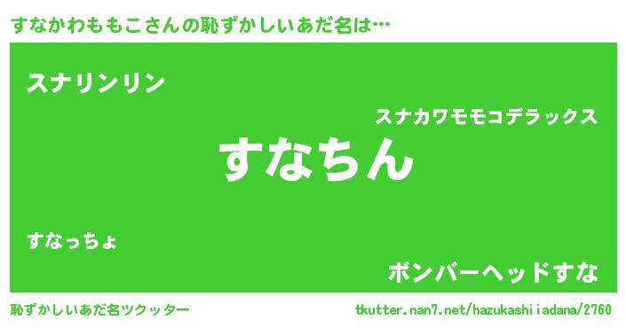 | ヒーロー風カッコイイあだ名 | 『仮面スナダー』『ネオスナカワモモコ』 |