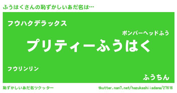 | ヘコむあだ名 | 『ふうにゅー』『ふうはく(震え声)』 |