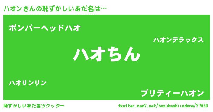 | ヘコむあだ名 | 『ハオン(笑)』『ハオにゅー』 |