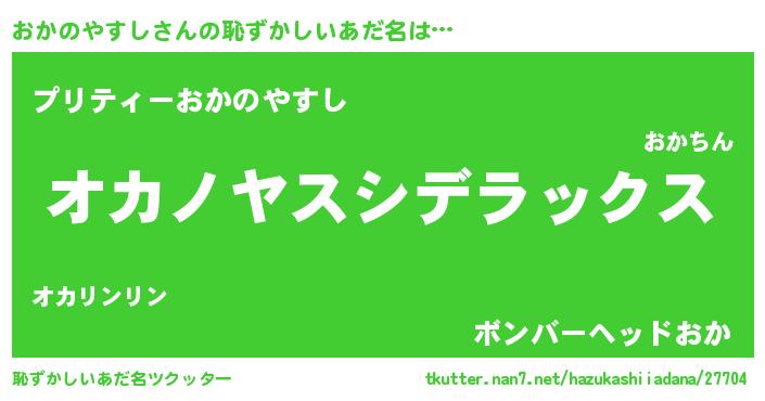 | 女子向けラノベタイトル風あだ名 | 『おかのやすしなんてお断りですっ。』 |