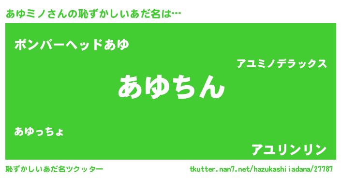 | 意味不明あだ名 | 『永久保存あゆミノ』『自称あゆミノ』 |