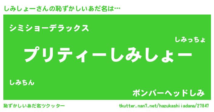 | 男性向けラノベタイトル風あだ名 | 『シミショーアートオンライン』 |