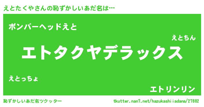 | 男性向けラノベタイトル風あだ名 | 『Re:えとたくやから始める異世界生活』 |
