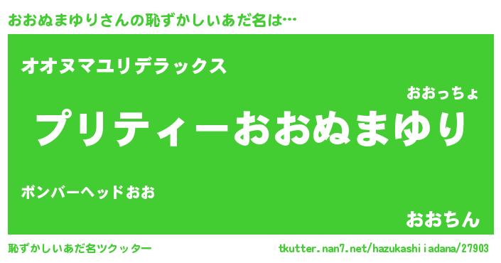 | ヘコむあだ名 | 『おおにゅー』『おおぬまゆり(小並感)』 |