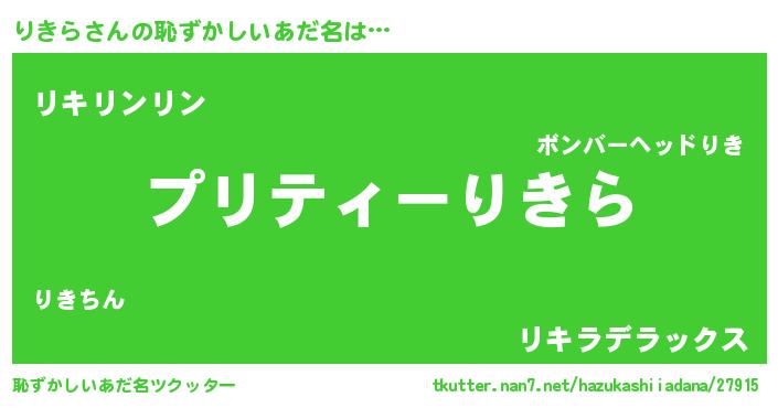 | 意味不明あだ名 | 『ペロリンりきら』『自称りきら』 |