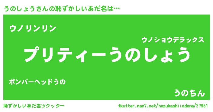 | 意味不明あだ名 | 『ペロリンうのしょう』『自称うのしょう』 |