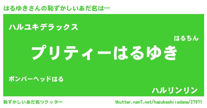 | ヒーロー風カッコイイあだ名 | 『スーパーハルユキ』『最強戦士ハルユキ』 |