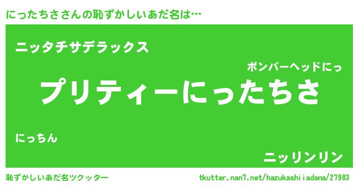 | 意味不明あだ名 | 『ペロリンにったちさ』『自称にったちさ』 |