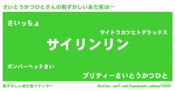 | ポケモン風あだ名 | 『サーイイ』『ヒサイトウカツヒト』 |