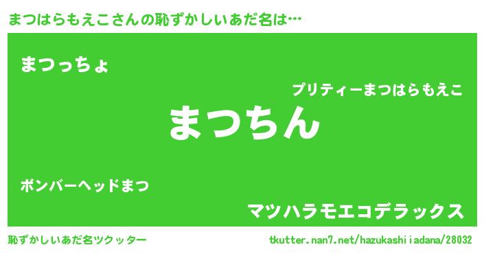 | ヘコむあだ名 | 『まつはらもえこ(震え声)』『つくし』 |