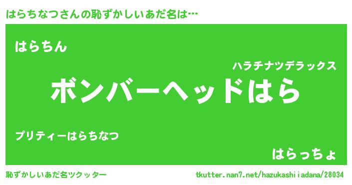 | ヘコむあだ名 | 『はらちなつ(苦笑)』『酢こんぶ』 |