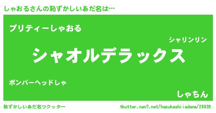 | 女子向けラノベタイトル風あだ名 | 『しゃおるなんてお断りですっ。』 |