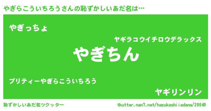 | ヘコむあだ名 | 『やぎらこういちろう(震え声)』『なまこ酢』 |