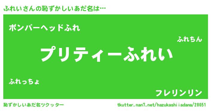 | 男性向けラノベタイトル風あだ名 | 『ふれいの憂鬱』『緋弾のフレイ』 |