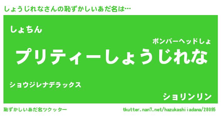| 男性向けラノベタイトル風あだ名 | 『ショウジレナアートオンライン』 |