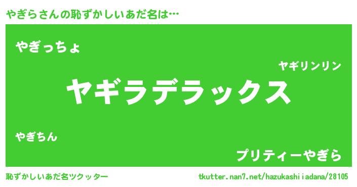 | ファンタジー風あだ名 | 『ゼヤギトゥ』『エターナルヤギラー』 |