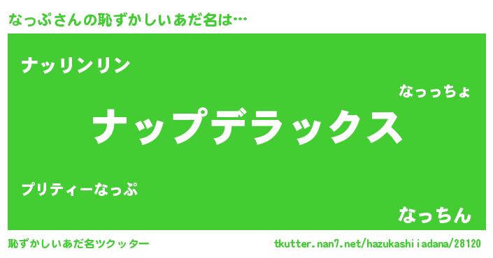 | 女子向けラノベタイトル風あだ名 | 『闇のなっぷ』『なっぷ様がみてる』 |