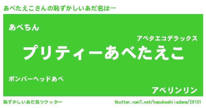 | ヒーロー風カッコイイあだ名 | 『スーパーアベタエコ』『仮面アベダー』 |