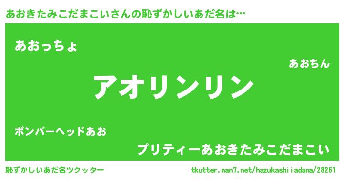| 女子向けラノベタイトル風あだ名 | 『あおきたみこだまこいは平凡を望む』 |