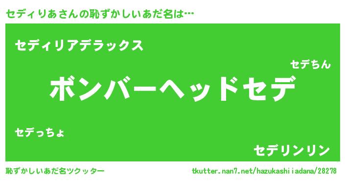 | ヘコむあだ名 | 『セデっ子』『セディりあ(苦笑)』 |