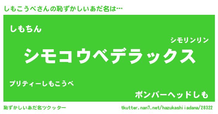 | 意味不明あだ名 | 『自称しもこうべ』『永久保存しもこうべ』 |