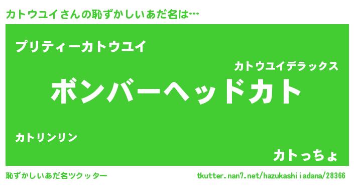 | 男性向けラノベタイトル風あだ名 | 『この素晴らしい世界にカトウユイを!』 |