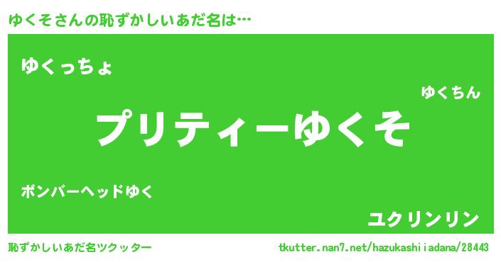 | 男性向けラノベタイトル風あだ名 | 『ゆくそに滅ぼされるだけの簡単なお仕事です』 |