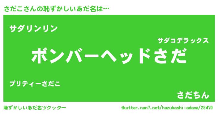 | ヘコむあだ名 | 『さだを』『さだこ(遠い目)』『豆乳』 |