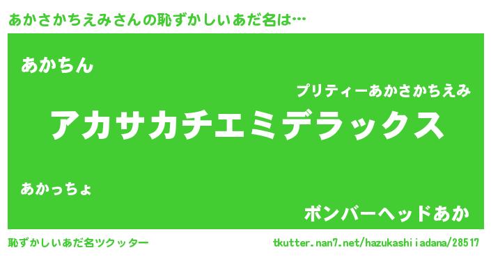ヘコむあだ名 | 『あかさかちえみ(笑)』『あかもー』 |