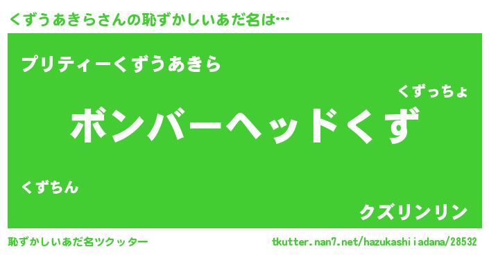 | ヒーロー風カッコイイあだ名 | 『仮面クズダー』『スーパークズウアキラ』 |