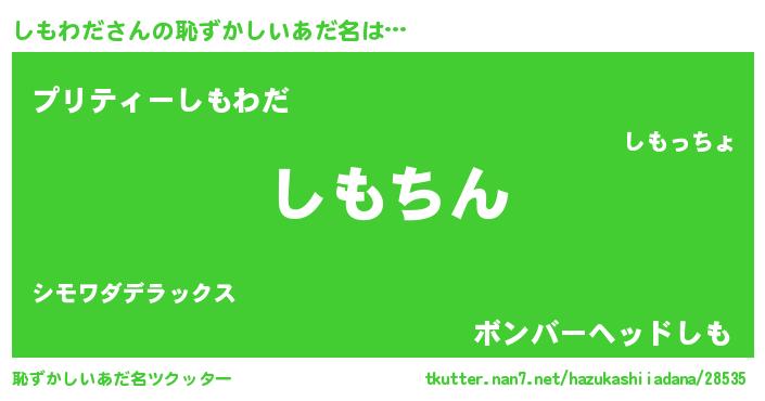 | ヘコむあだ名 | 『しもわだ(小並感)』『しもっふぃ~』 |